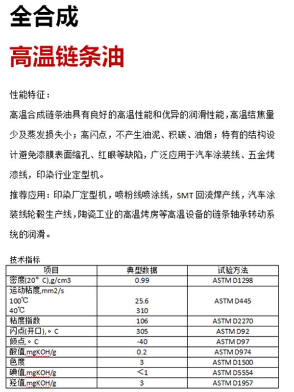 廈門威馬工貿(mào)有限公司位于美麗的花園城市-廈門市同安區(qū),公司專營合成高溫油脂系列產(chǎn)品。產(chǎn)品分為:高溫鏈條油、高溫潤滑脂、高低溫潤滑脂等系列油品。廣泛應(yīng)用于:定型機(jī)、噴涂/噴粉、巖棉等高溫潤滑設(shè)備,本品無煙,無殘?jiān)瑢儆谌铣筛邷赜拖盗校杉臉釉囉茫L期服務(wù)全國客戶。